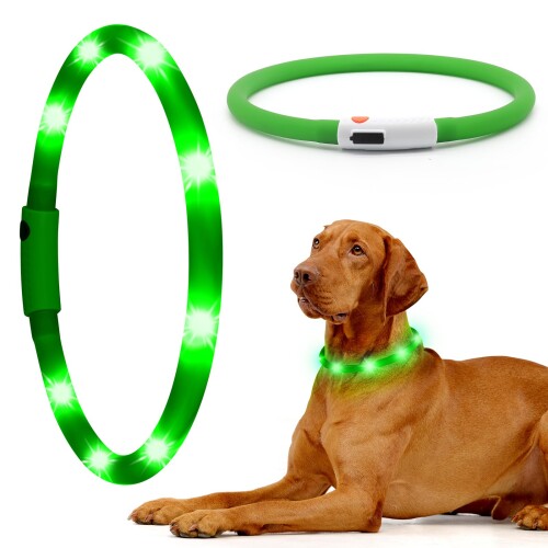 illumifun 2個セットの光る犬用首輪、USB充電式で、夜間散歩用の光る首輪。視認距離は500mで、夜間も安心。小型犬、中型犬、大型犬に対応するカット可能な光る首輪。 (緑色)