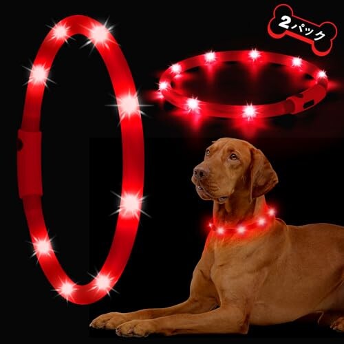 Illumifun 犬 光る首輪 - 2 パック充電式 で夜間散歩用の光る首輪。視認距離は500mで。軽量 長さを自由にカット可能 小型犬 猫、中型犬、大型犬に対応 (赤色)