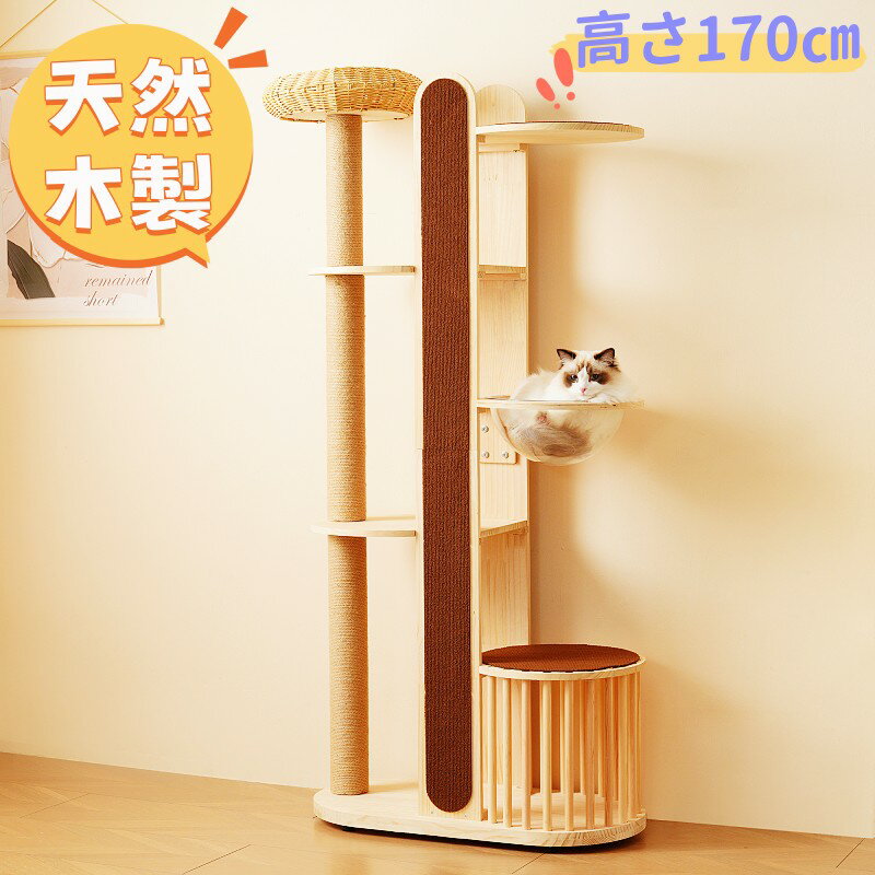 天然木製 キャットタワー 猫タワー スリム 据え置き 高さ173.5cm 藤編みかご 宇宙船カプセル 多頭飼い 通気性抜群 軽量 丈夫 安定性抜群 爪とぎ支柱 お手入れ簡単 キャットツリー ネコタワー 上り下りしやすい 爪とぎポール 木製 可愛い 子猫 大型猫 ペット用品 おしゃれ