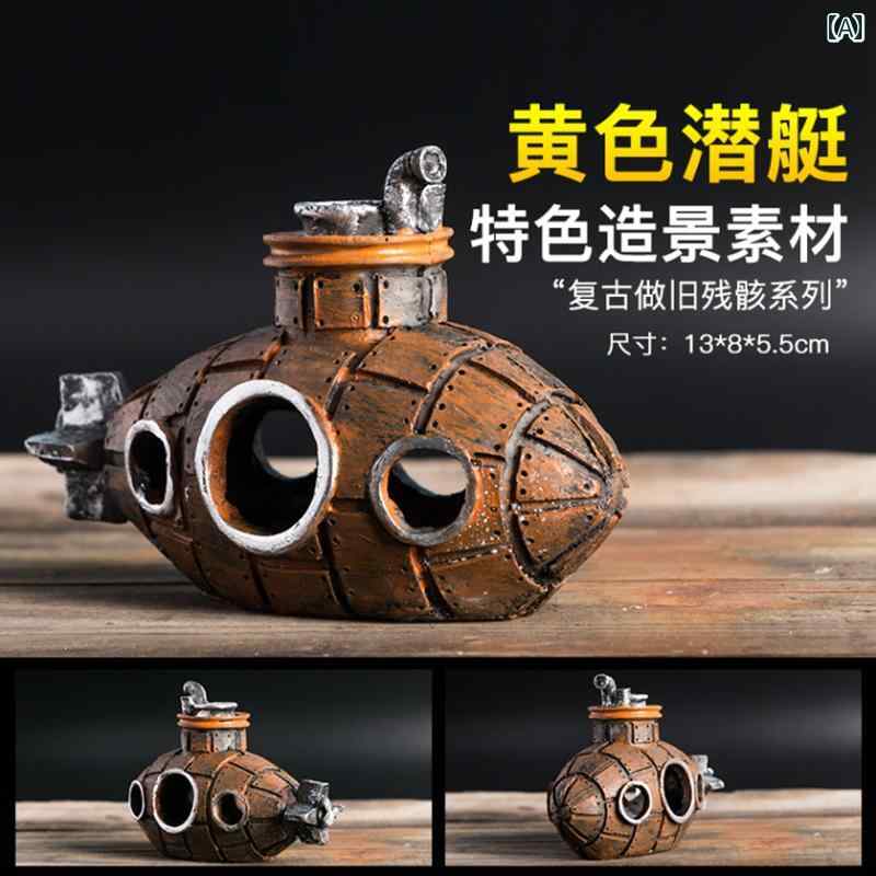 アクアリウム オブジェ 水槽 装飾品 インテリア用品 置物 レイアウト オーナメント 鑑賞 隠れ家 淡水生物 熱帯魚 エビ 家庭用 おしゃれ レトロ 潜水艦 車 かぼちゃ