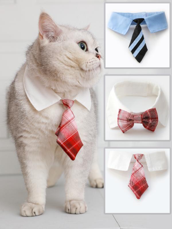 ねこ おしゃれ 首輪 ペット アクセサリー 制服風 蝶ネクタイ スタイ 犬 ウサギ 警察 コスプレ 写真 撮影 小道具 衣装 面ファスナー 襟 チェック柄 ストライプ 赤 青