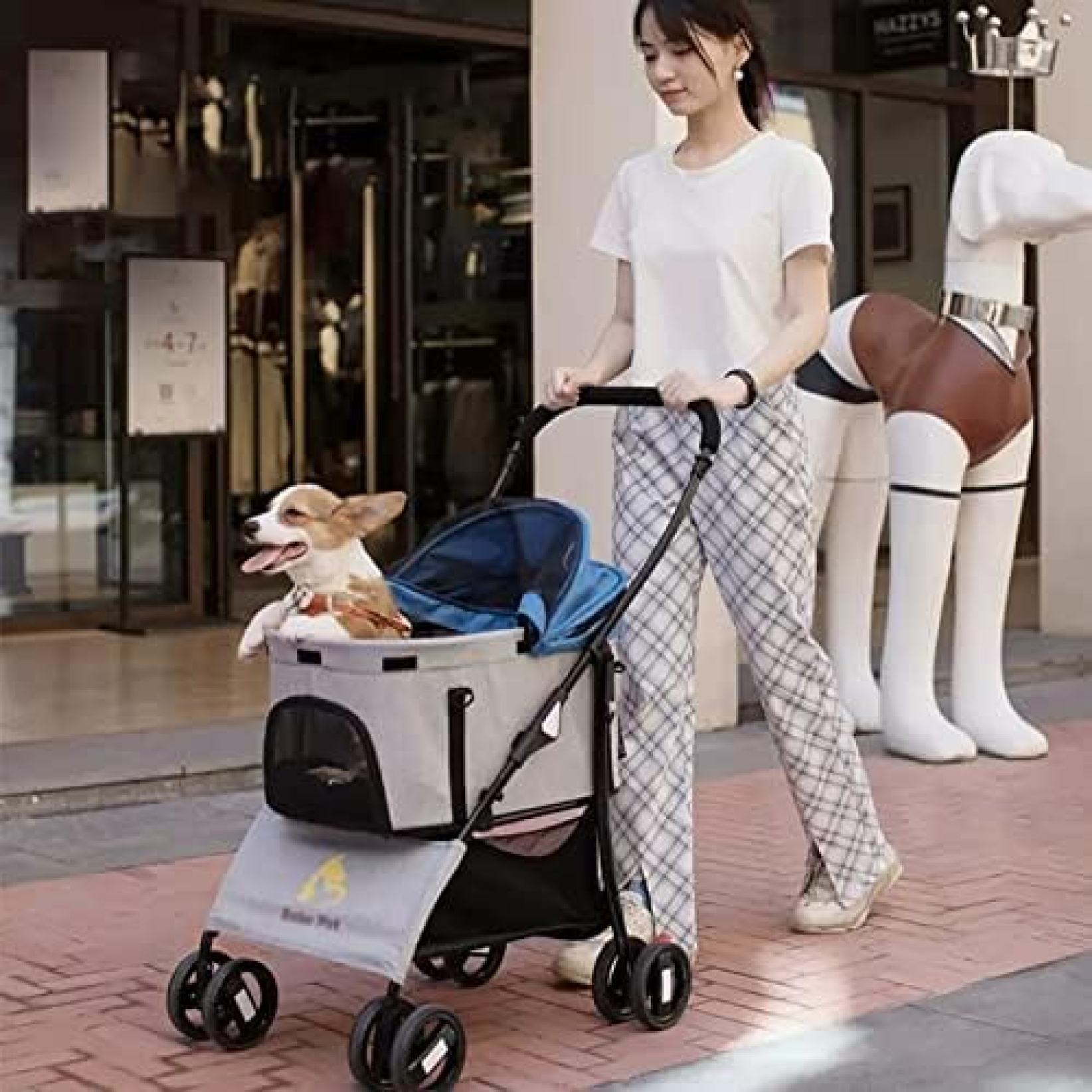 【20%OFFクーポン〜】ペットカート ベビーカー 犬 猫 バギー 多頭 ジョギングのための猫と犬の四輪キャリア 折りたたみ可能な軽量小型ペットベビーカー大きな収納バスケット ペットを最大33ポンド保有します