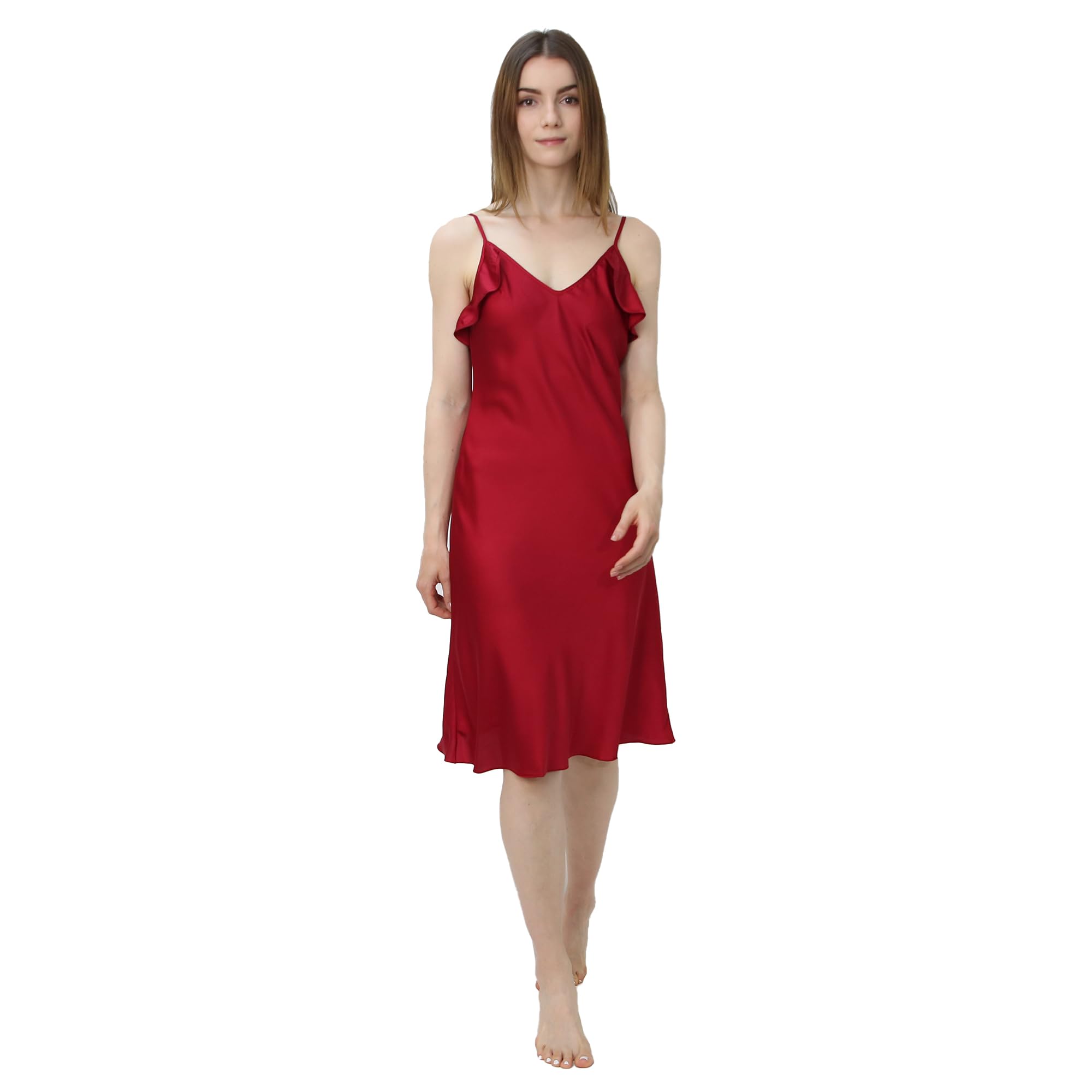 【送料無料】[Rose Halcyon] バスローブレディース キャミソールガウン サテン ランジェリーナイトウェア シルク レディースパジャマ セット 浴衣 部屋着 ルームウェア セクシー 優しい肌触り お風呂上り 色:レッド、サイズ:L