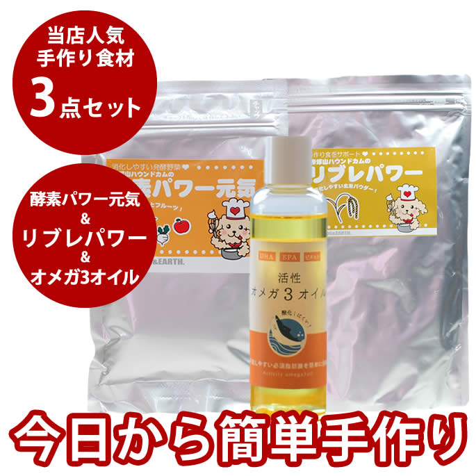 【割引クーポン配布中】犬用 手作り食材3点セット [簡単手作り食]イヌ オメガ3 酵素パワー元気 リブレパワーの3点セット 手作り食の栄養補助に最適です。