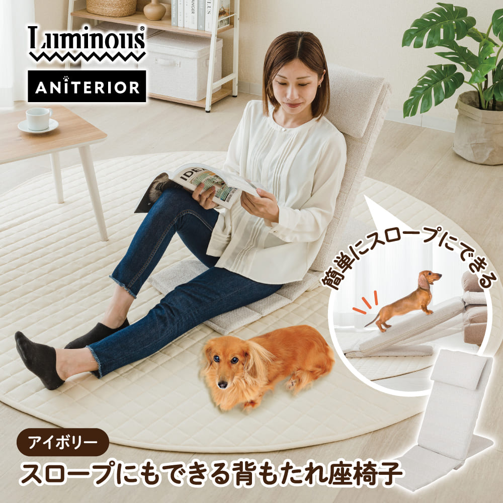 ルミナス スロープにもできる背もたれ座椅子 アイボリー ペット家具 ペット スロープ ドッグステップ 座椅子 背もたれ 段差 ソファ 一人掛け 犬 猫 チェア 抗菌 防臭 傷に強い アニテリア 介護 インテリア おしゃれ ドウシシャ ANIZ-IV