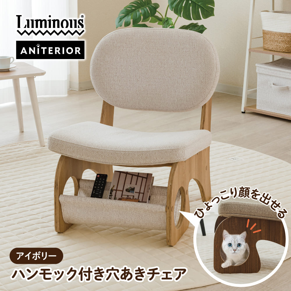 ルミナス ハンモック付穴あきチェア アイボリー ペット家具 ペット ハンモック チェア 座椅子 背もたれ 一人掛け 犬 猫 抗菌 防臭 傷に強い アニテリア インテリア おしゃれ ドウシシャ ANIC-IV