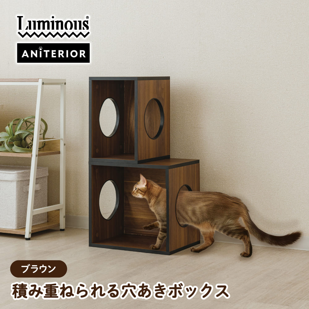 ルミナス 積み重ねられる穴あきボックス ブラウン ボックス 収納ボックス カラーボックス 穴あき キャットタワー 収納 ペット家具 ペット 猫 ディスプレイ トンネル 傷に強い 組み合わせ 積み重ね アニテリア インテリア おしゃれ ドウシシャ ANIN-BR