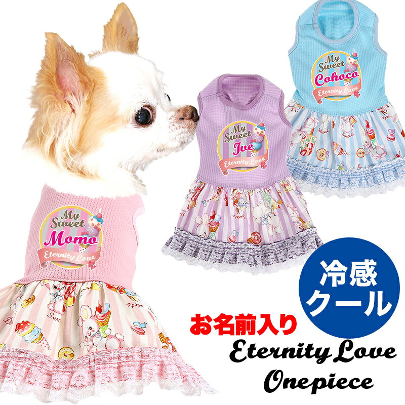 \11月わんわんSALE★開催中/【犬 服 犬の服 名入れ 春 夏服用】愛犬のお名前入り 接触冷感素材クール エタニティラブワンピース【暑さ対策 アイスクリーム レース ドッグ ペット ウェア トイプードル チワワ タムベディ】(L/)