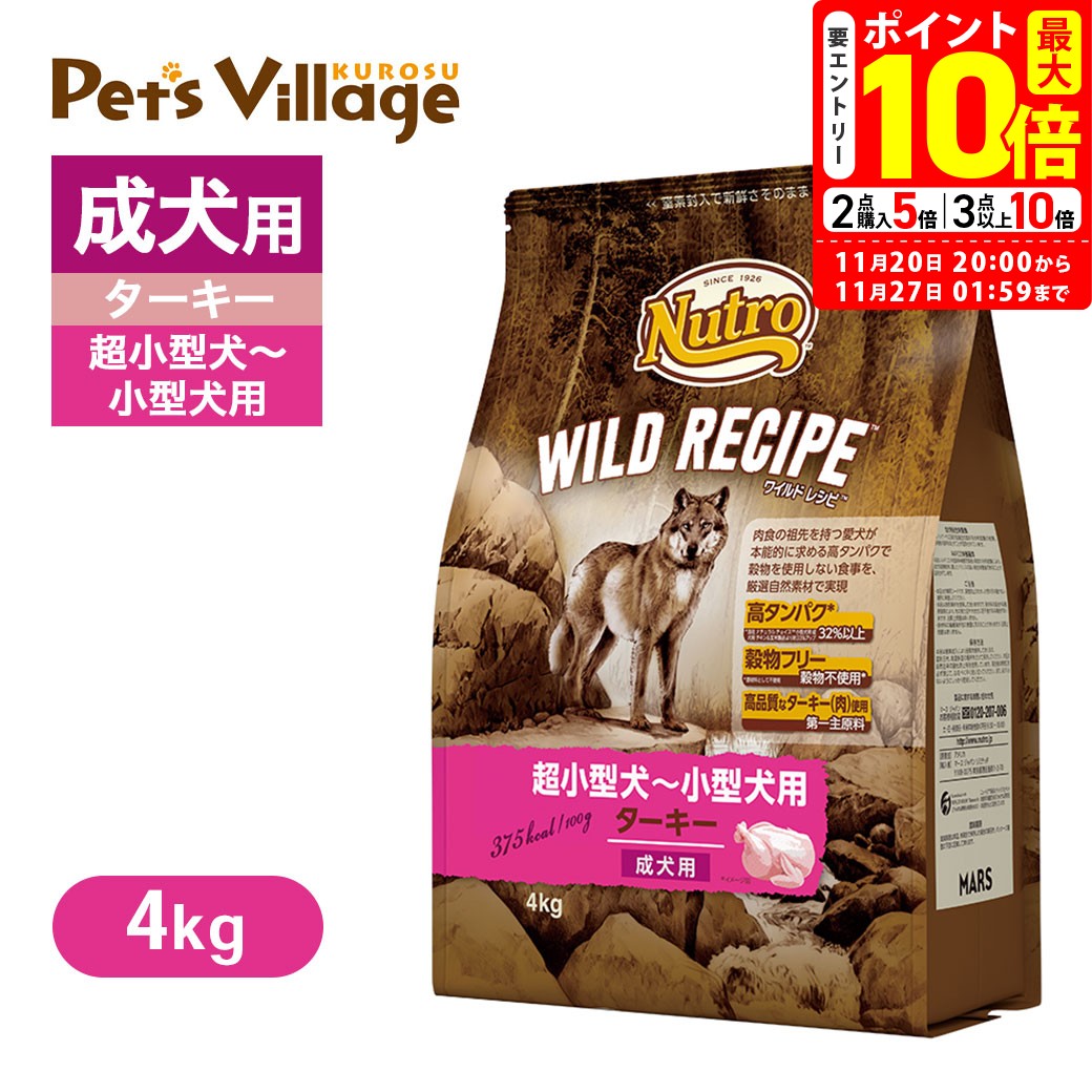 ポイント最大10倍!11/20 20:00〜11/27 01:59まで|公認店 ニュートロ ワイルドレシピ 超小型犬〜小型犬用 成犬用 ターキー 4kg ごはん ご飯 【ワイルドレシピ(WILD RECIPE)】[ドッグフード] ペッツビレッジクロス