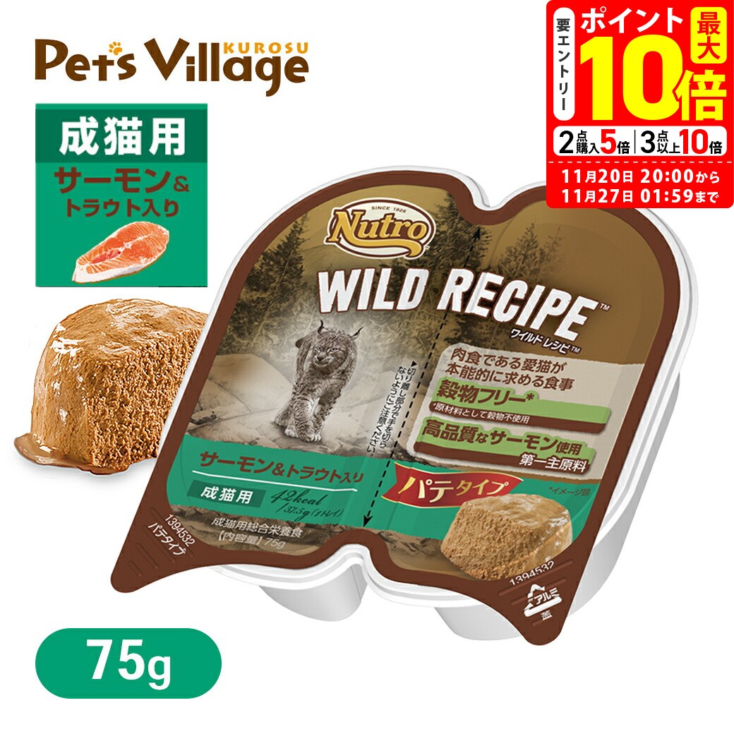 ポイント最大10倍!11/20 20:00〜11/27 01:59まで|公認店 ニュートロ ワイルドレシピ キャットフード 成猫用 サーモン&トラウト入り パテタイプ 75g ごはん ご飯 【ワイルドレシピ(WILD RECIPE)】[キャットフード] ペッツビレッジクロス