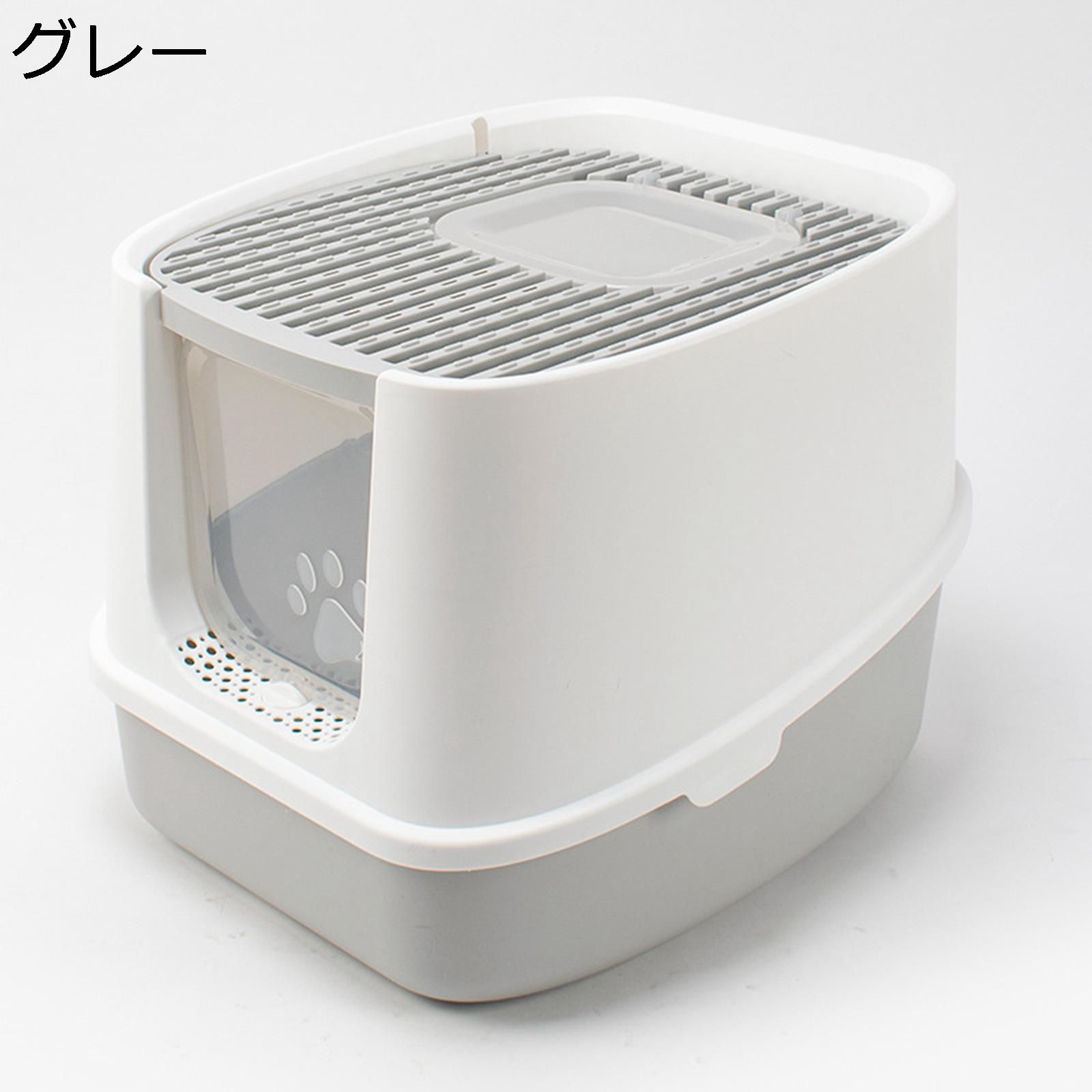 引き出し式 密閉式 2WAY出入り方法 大型 猫用トイレ本体 猫用トイレボックス 蓋付き ハーフカバー 耐久性 砂落とし 臭い防止 倒れにくい お出かけ 出入り便利 フレキシブルリッターボックス