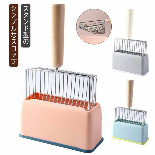 スタンド型のシンプルなスコップどこでも置きやすいスタンド式のケース付き。固まった猫砂を、スコップ全体に施されたメッシュですくい上げ、余分な砂は落ちるように設計されています。設計され隙間は、幅広い猫砂に対応できます。シンプルなデザインはトイレ用スコップとして使うものお洒落に。インテリアを邪魔にならないにもうれしいポイント。 サイズ17*28*8cmサイズについての説明17*28*8cm/重さ約308g ※サイズ表の実寸法は商品によって1-2cm程度の誤差がある場合がございます。素材金属 ABS 木色グレーセット ピンクセット ブルーセット備考 ●サイズ詳細等の測り方はスタッフ間で統一、徹底はしておりますが、実寸は商品によって若干の誤差(1cm〜3cm )がある場合がございますので、予めご了承ください。●製造ロットにより、細部形状の違いや、同色でも色味に多少の誤差が生じます。●パッケージは改良のため予告なく仕様を変更する場合があります。▼商品の色は、撮影時の光や、お客様のモニターの色具合などにより、実際の商品と異なる場合がございます。あらかじめ、ご了承ください。▼生地の特性上、やや匂いが強く感じられるものもございます。数日のご使用や陰干しなどで気になる匂いはほとんど感じられなくなります。▼同じ商品でも生産時期により形やサイズ、カラーに多少の誤差が生じる場合もございます。▼他店舗でも在庫を共有して販売をしている為、受注後欠品となる場合もございます。予め、ご了承お願い申し上げます。▼出荷前に全て検品を行っておりますが、万が一商品に不具合があった場合は、お問い合わせフォームまたはメールよりご連絡頂けます様お願い申し上げます。速やかに対応致しますのでご安心ください。