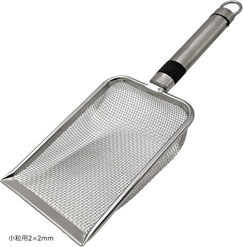 猫砂スコップ ステンレス 細かい 細かい砂用 大粒 大きい 鉱物 シャベル 選べる網目サイズ 小粒用2x2mm (シルバー, 小粒用2x2mm)