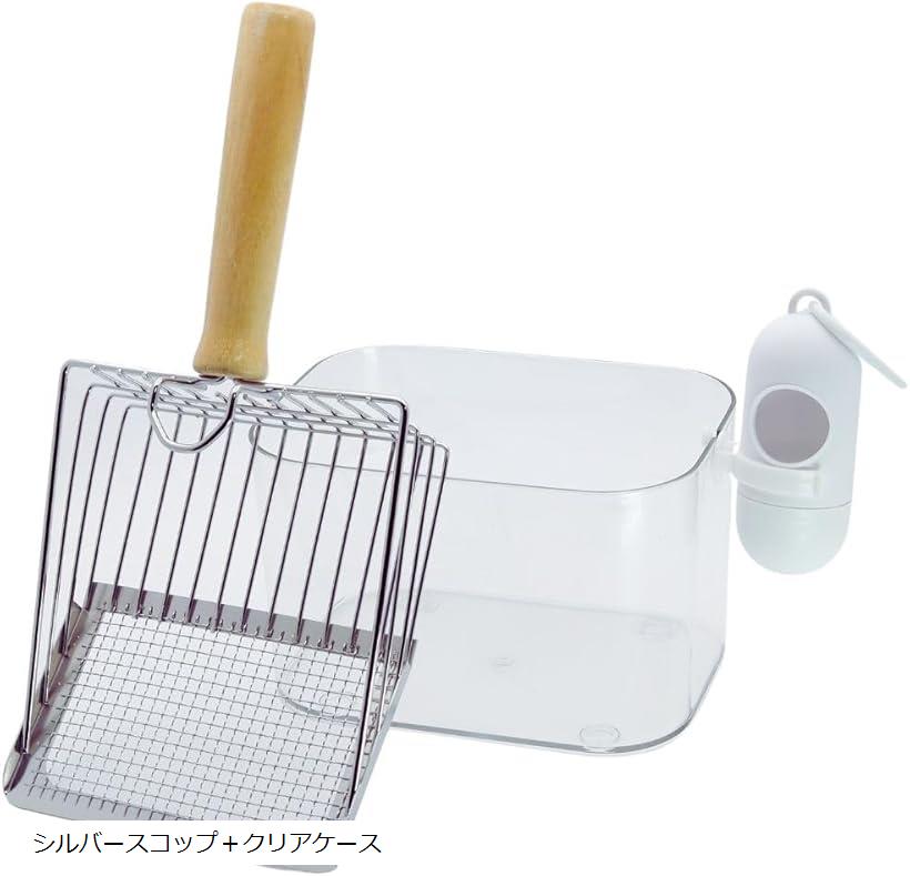 【楽天ランキング1位入賞】猫砂スコップ ステンレス製 収納 ケース トイレスコップ 金属 シャベル 砂取り 猫砂すくい ペット トイレ用品 お手入れ (シルバースコップ+クリアケース)