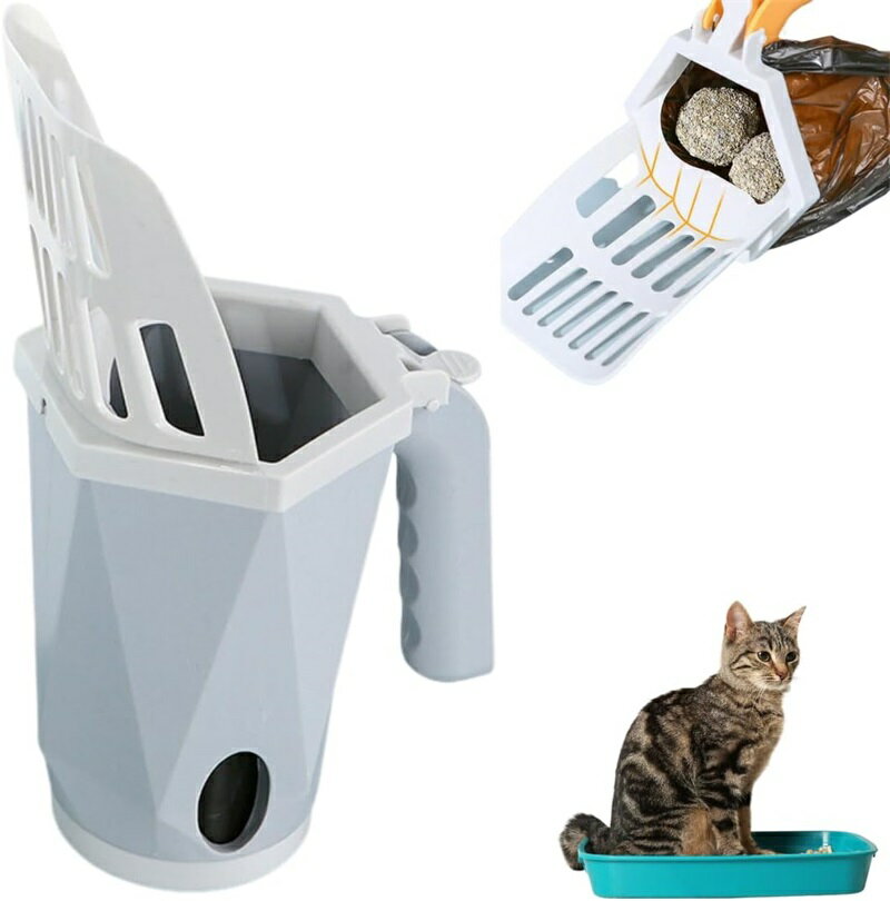 送料無料 猫用トイレスコップ 猫砂スコップ ゴミ箱 一体型 2in1 ペット用品 ペットグッズ 猫砂シャベル サンドスコップ ごみ袋収納 自立 猫砂用 砂取り トイレ掃除 お手入れ