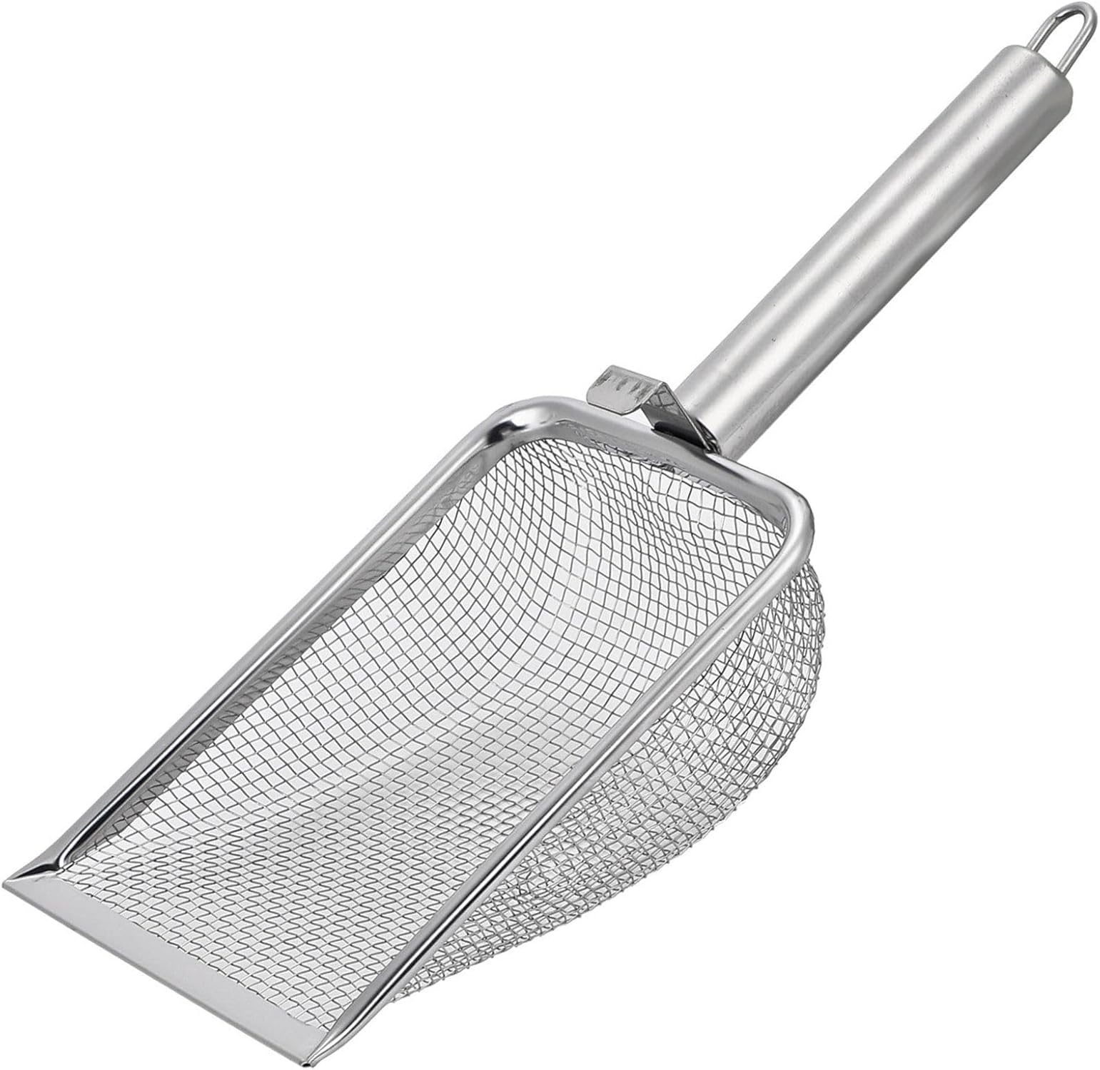 猫砂スコップ ステンレス メッシュ ひっかけ フック付 シャベル 深型 細粒 2.8mm