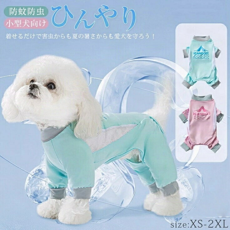 商品説明 color="#000000">商品名接触冷感+防蚊!ダブルの機能で愛犬を守る。 360°ストレッチの快適カバーオール。 ひんやり気持ちいい接触冷感と防蚊・防虫の機能が愛犬を守ります。 虫の多い季節から暑い日まで心地よく過ごせる愛犬用カバーオールです。 優れたストレッチ性で、愛犬のどんな動きにもジャストフィット! 毛が付きにくくお手入れしやすいクールウェア 換毛期のお部屋着としてもおススメです。 着せるだけで害虫からも夏の暑さからも愛犬を守ってくれる快適ウェア♪ 素材 width="291" bgcolor="#ffffff">ポリエステル、ポリウレタン bgcolor="#f0f0f0">生産国 width="291" bgcolor="#ffffff">中国 bgcolor="#f0f0f0">サイズ color="#000000"> 【XS】胴回り:30cm 背丈:20cm 首回り:27cm 参考体重0.5-1.5kg 【S】胴回り:35cm 背丈:25cm 首回り:29cm 参考体重1.5-2.5kg 【M】胴回り:40cm 背丈:30cm 首回り:32cm 参考体重2.5-4kg 【L】胴回り:45cm 背丈:35cm 首回り:35cm 参考体重4-6kg 【XL】胴回り:50cm 背丈:40cm 首回り:38cm 参考体重6-7.5kg 【XXL】胴回り:55cm 背丈:45cm 首回り:41cm 参考体重7.5-10kg セット内容 犬服 単品 注意 width="291" bgcolor="#ffffff"> PC環境・光の具合により、色や素材のイメージが写真と若干異なる場合がございます。 モデル・写真に使用されているアクセサリー・小物は別途記載が無い限り付属いたしません。 商品に不良があった場合は、商品到着から5日以内にご連絡いただければご返金・交換対応させて頂きます。 商品のサイズは、全て平置きにて外寸を測定しております。 商品によっては若干誤差が発生してしまう場合がございます。 該当商品は他店と在庫共有です。タイミングにより、在庫ズレが生じる場合がございます。予めご了承ください。
