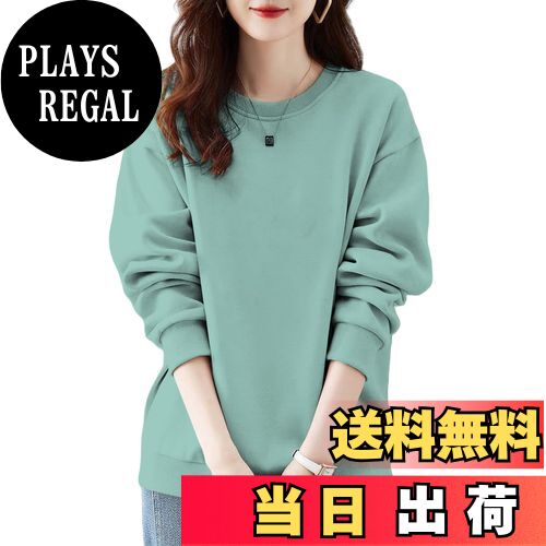 【送料無料】[MEME XTRA] ベーシックトレーナー レディース 春秋 薄手 綿 クルーネック 長袖 スウェット トップス ゆったり カジュアル 体型カバー 大人可愛い おしゃれ 重ね着 シンプル 無地 学生 スポーツウェア 色:ターコイズ・グリーン、サイズ:L