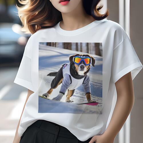 犬専用Tシャツ 選べる5size 小型犬 袖あり 半袖 ホワイト デザイン T shirt XS S M L XL ペットウェア ペット服 カジュアル おしゃれ コットン 綿 スポーツ 写真・風景 写真 スノーボード 雪 005858