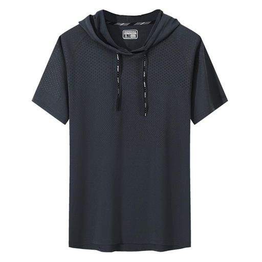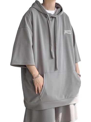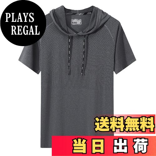 [JoveJek]パーカー半袖メンズ薄手tシャツストレッチ大きいサイズトレーニングスウェット上スポーツ吸汗速乾UVカット春夏フード付きプルオーバーシャツゆったり(wyn005-Darkgrey-3XL)