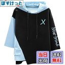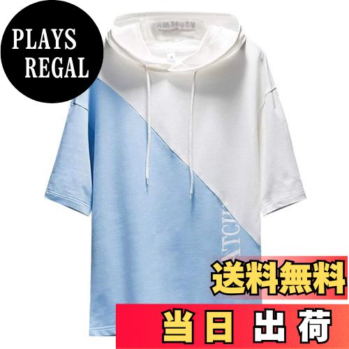 【送料無料】Sukinana パーカー メンズ 半袖 tシャツ 夏服 おしゃれ 大きいサイズ フード付き スポーツ ゆったり カジュアル プルオーバー 春夏秋 色:ブルー、サイズ:M