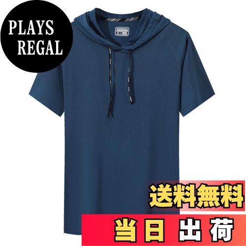 【送料無料】[JoveJek] パーカー メンズ 薄手 tシャツ ストレッチ 大きいサイズ トレーニング スウェット 上 スポーツ 吸汗速乾 半袖 長袖 UVカット フード付き 春 夏 プルオーバー シャツ ゆったり 色:ダークブルー、サイズ:3XL