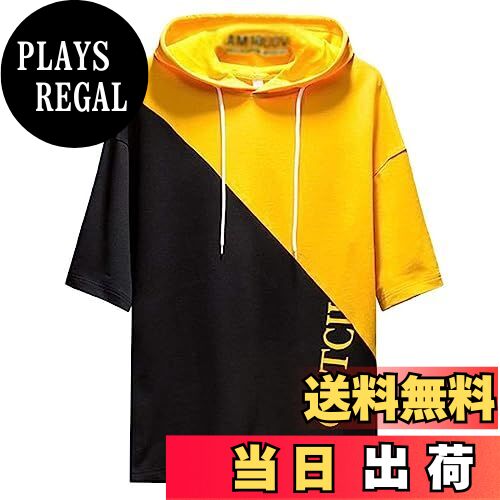 【送料無料】Sukinana パーカー メンズ 半袖 tシャツ 夏服 おしゃれ 大きいサイズ フード付き スポーツ ゆったり カジュアル プルオーバー 春夏秋 色:イエロー、サイズ:3XL