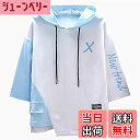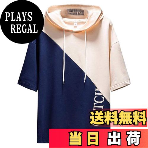 【送料無料】Sukinana パーカー メンズ 半袖 tシャツ 夏服 おしゃれ 大きいサイズ フード付き スポーツ ゆったり カジュアル プルオーバー 春夏秋 色:ブルー、サイズ:2XL