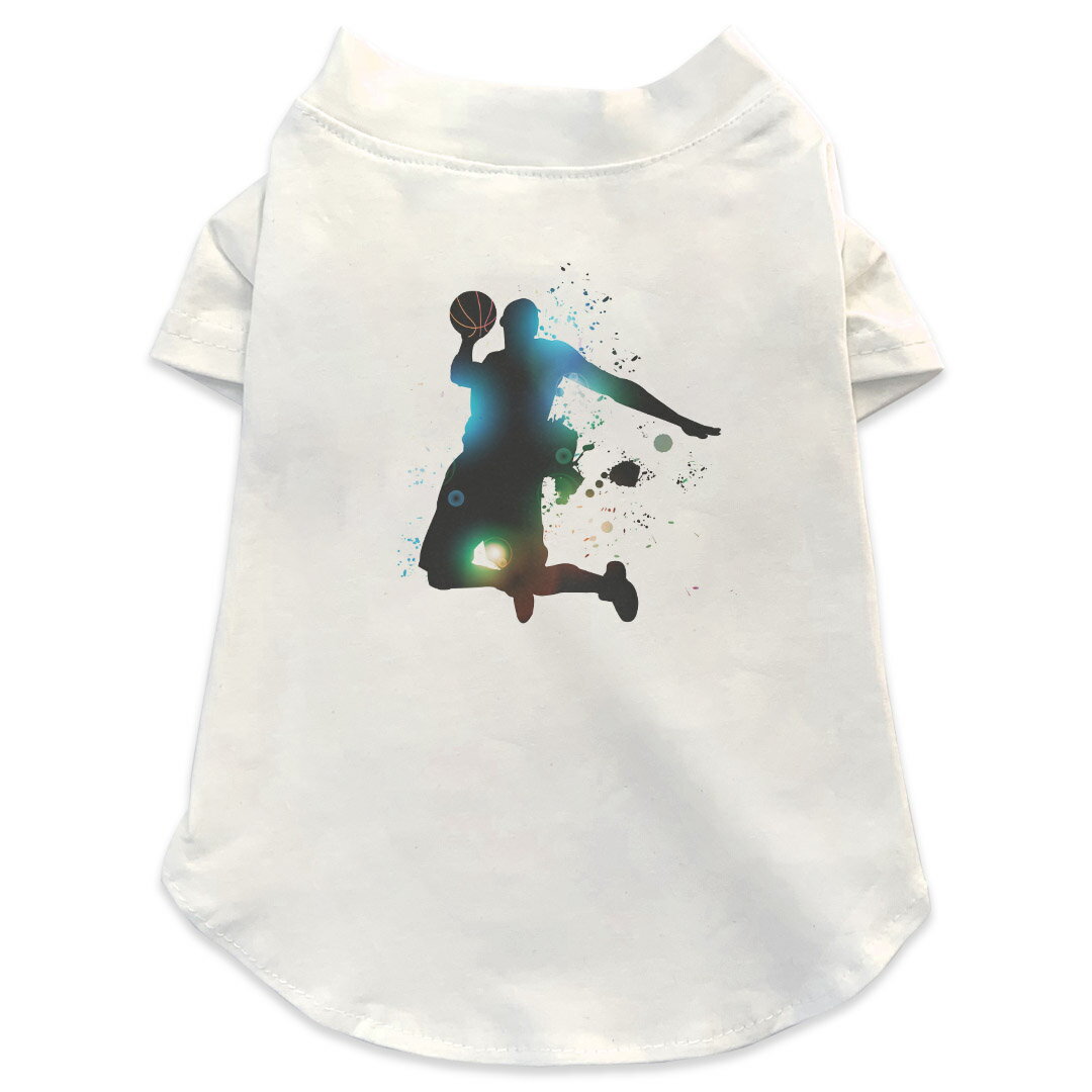 犬専用Tシャツ 選べる5size 小型犬 袖あり 半袖 ホワイト デザイン T shirt XS S M L XL ペットウェア ペット服 カジュアル おしゃれ コットン 綿 スポーツ バスケットボール ダンク 001170