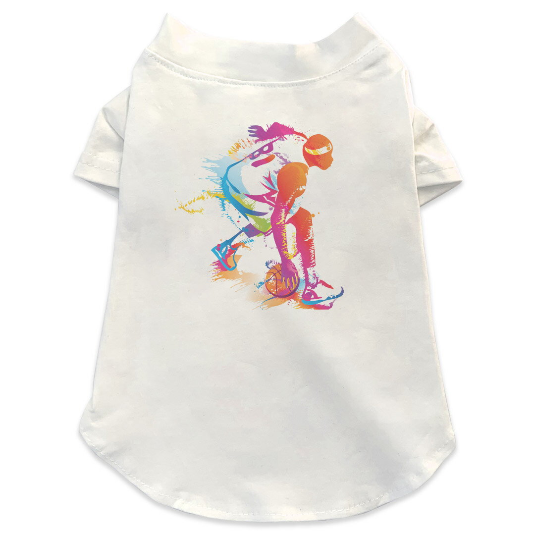 犬専用Tシャツ 選べる5size 小型犬 袖あり 半袖 ホワイト デザイン T shirt XS S M L XL ペットウェア ペット服 カジュアル おしゃれ コットン 綿 スポーツ バスケ イラスト 004759
