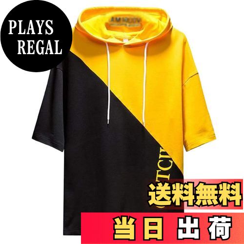 【送料無料】Sukinana パーカー メンズ 半袖 tシャツ 夏服 おしゃれ 大きいサイズ フード付き スポーツ ゆったり カジュアル プルオーバー 春夏秋 色:イエロー、サイズ:XL