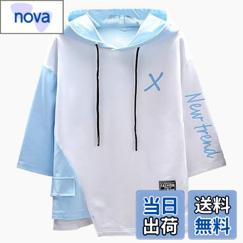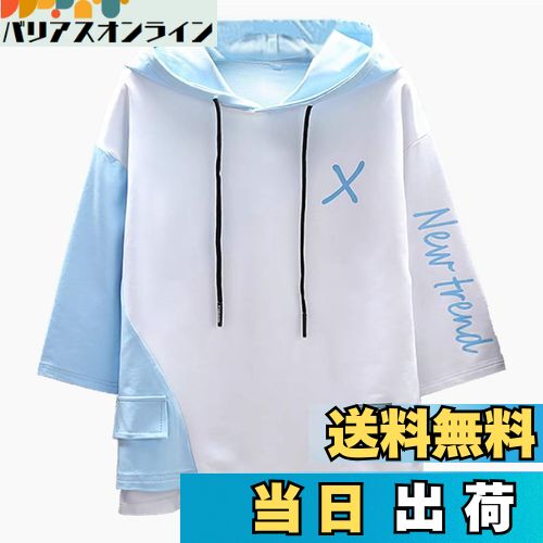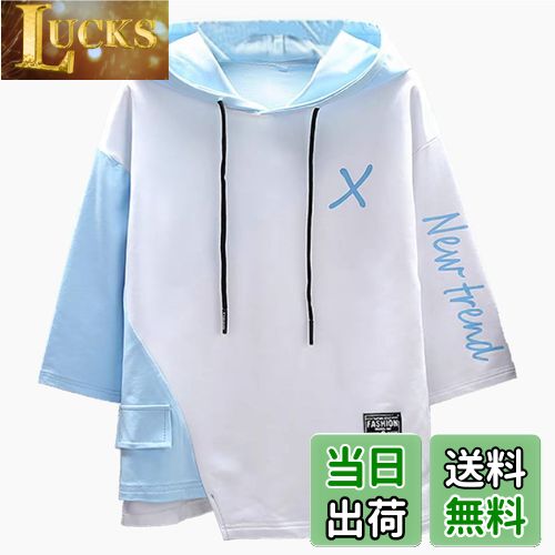 【送料無料】[SUKESEM] パーカー メンズ 半袖 七分袖 tシャツ おしゃれ 大きいサイズ フード付き ゆったり スポーツウェア カジュアル プルオーバー (白, XL)