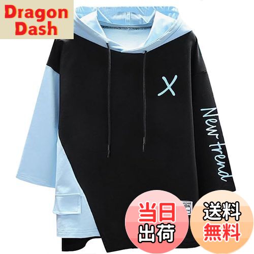 【送料無料】[JoveJek] パーカー メンズ 薄手 tシャツ ストレッチ 大きいサイズ トレーニング スウェット 上 スポーツ 吸汗速乾 半袖 長袖 UVカット フード付き 春 夏 プルオーバー シャツ ゆったり 色:ダークブルー、サイズ:XL