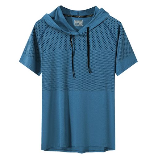 [JoveJek]パーカー半袖メンズ薄手tシャツストレッチ大きいサイズトレーニングスウェット上スポーツ吸汗速乾UVカット春夏フード付きプルオーバーシャツゆったり(wyn005-Blue-3XL)