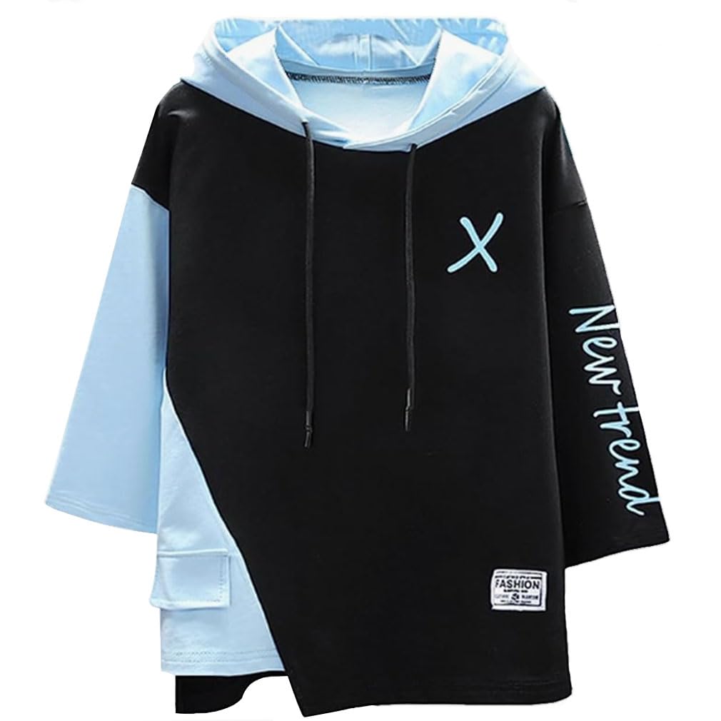 【送料無料】[SUKESEM] パーカー メンズ 半袖 七分袖 tシャツ おしゃれ 大きいサイズ フード付き ゆったり スポーツウェア カジュアル プルオーバー 色:黒、サイズ:L Regular