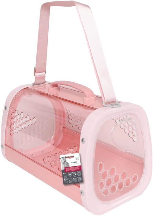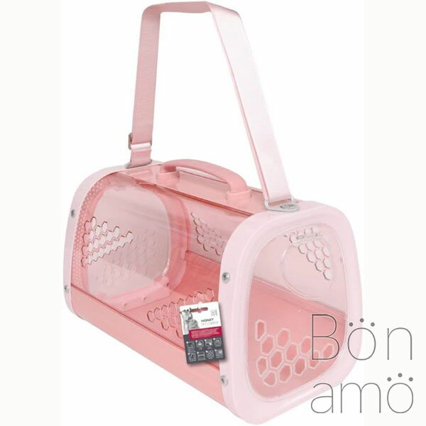 お取り寄せ品 Petifam ペティファーム M-PETS エムペッツ ハニーペットキャリー ピンク ハチの巣模様の空気穴 クリアペットキャリー HONEY Transport cage 20400399 愛犬用 愛猫用 サイズ 幅45.5×奥行27×高さ29(cm) ABS樹脂・透明ポリカーボネート
