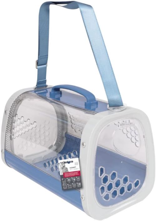 【お取り寄せ品】Petifam ペティファーム M-PETS エムペッツ ハニーペットキャリー ブルー ハチの巣模様の空気穴 クリアペットキャリー HONEY Transport cage 20400499