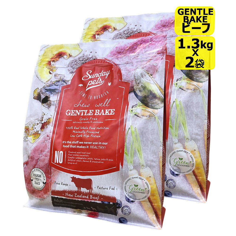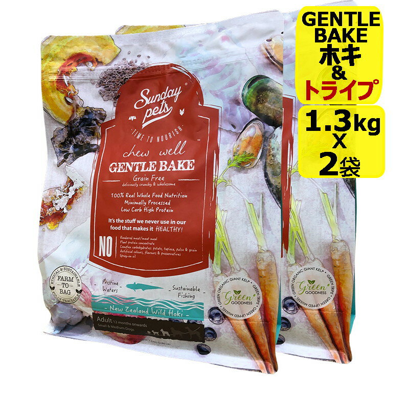 【犬】SundayPets ジェントルベイク ラム with トライプとビーフwithトライプ の2種各1.3kgの2袋セット ドライフード ドッグフード総合栄養食 プレミアムフード【PU1127】