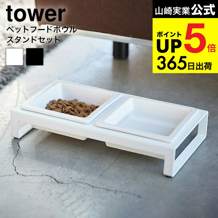 (土・日発送可) [ ペットフードボウルスタンドセット タワー ] 山崎実業 公式 tower ホワイト/ブラック フードボール 猫 犬 ご飯 エサ台 食器台 お皿 フードスタンド シンプル おしゃれ 4206 4207 タワーシリーズ JGS 最強配送 dej cpj 送料無料