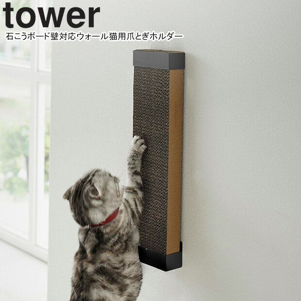 《ポイント5倍!》収納ホルダー シンプル 石こうボード壁対応ウォール猫用爪とぎホルダー タワー tower コンパクト ネコ 爪とぎ 石こうボード 山崎実業 yamazaki ヤマジツ おしゃれ ホワイト タワーシリーズ つめとぎ ブラック 4096 4097 壁面 高さ調節
