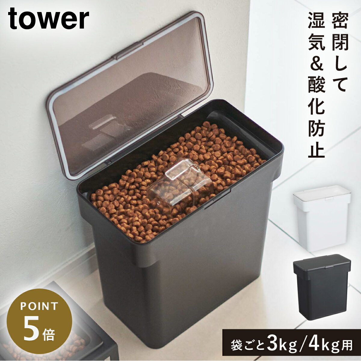 【レビュー特典】 tower 『 山崎実業 密閉ペットフードストッカー タワー 3.5kg 計量カップ付 』 保存容器 保存ケース ストッカー 計量カップ ペット ペットフード 犬 猫 シンプル おしゃれ 公式 ホワイト ブラック 5611 5612 YAMAZAKI