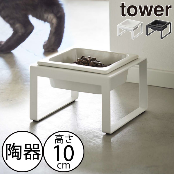 (土・日発送可) [ ペットフードボウルスタンド タワー ] 山崎実業 tower ホワイト/ブラック 5814 5815 / フードボール 猫 犬 ペット 食器 ご飯 エサ台 食器台 お皿 フードスタンド シンプル おしゃれ タワーシリーズ JGS 最強配送 dej cpj 送料無料