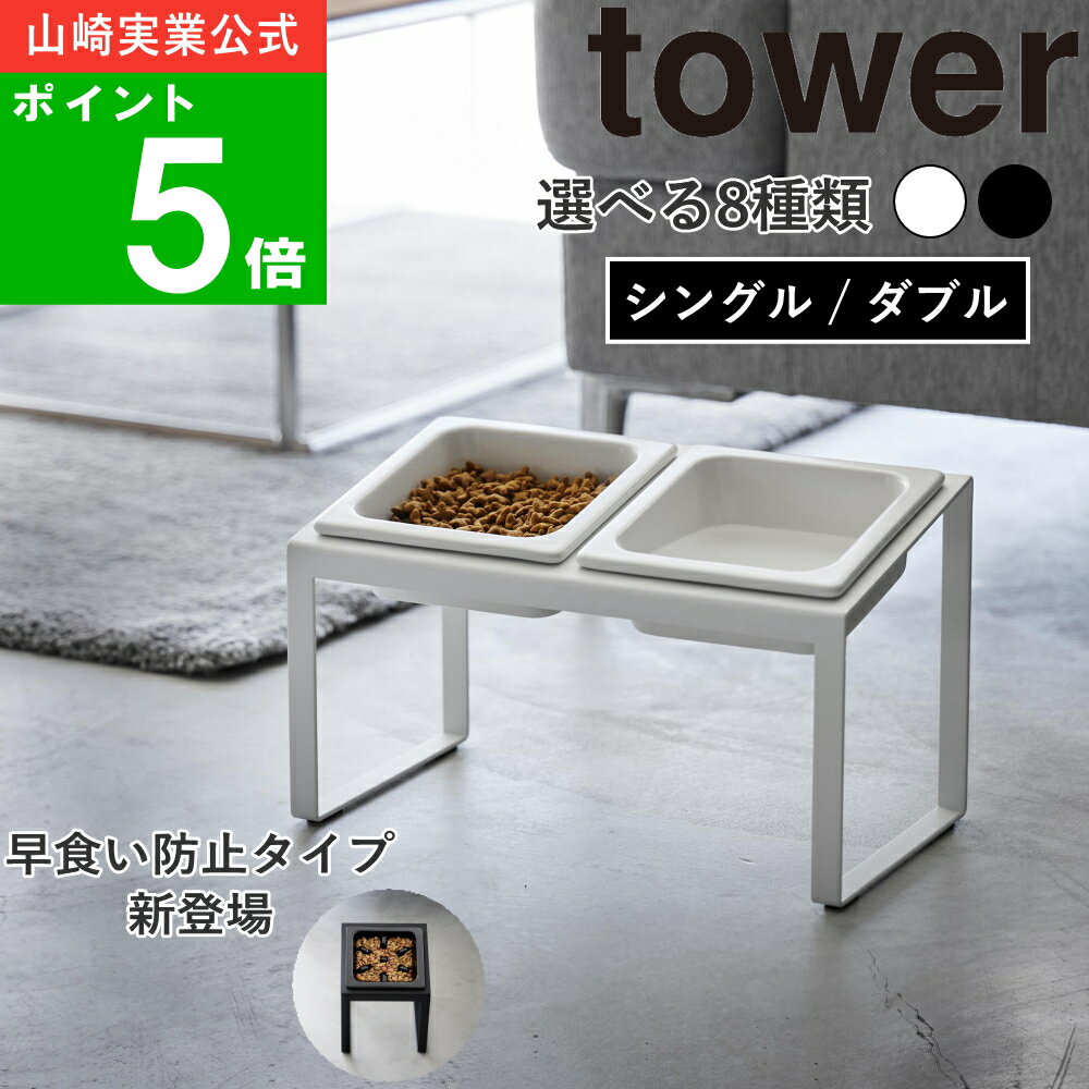 早食い防止タイプ新登場 ( ペットフード ボウル スタンド 斜めハイタイプ シングル / ダブル タワー ) tower 山崎実業 公式 餌 エサ台 餌入れ 食器 ドッグ フード キャット 犬 猫 犬用 猫用 室内 おしゃれ 棚 ラック 小型犬 中型犬 子猫 10035 10036 10037 10038