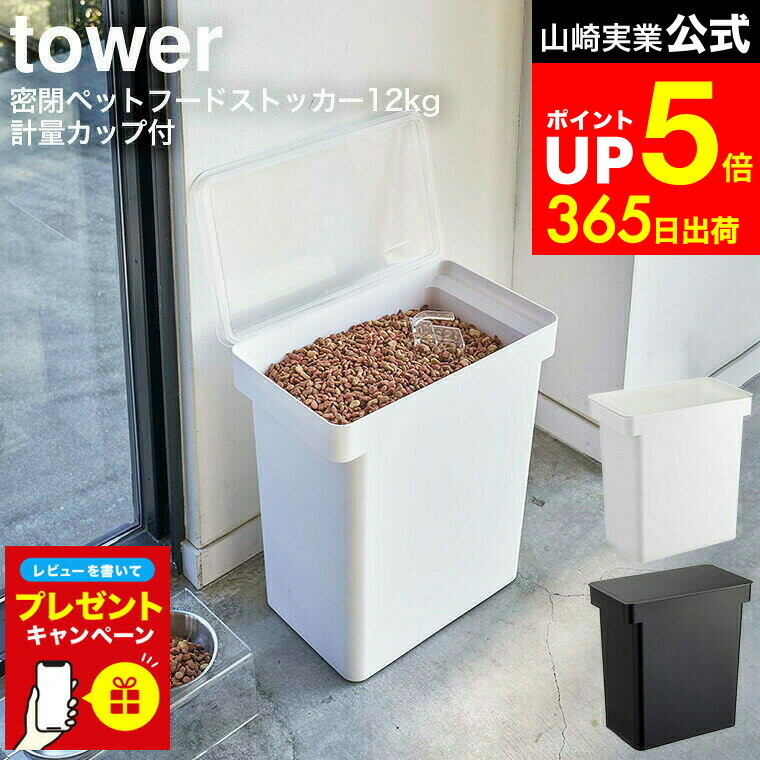 【LINEお友達で最大330円クーポン】【レビュー特典】[ 密閉ペットフードストッカー タワー 12kg 計量カップ付 ] 山崎実業 公式 tower ホワイト/ブラック 5617 5618 / ペットフード ストッカー ドッグフード 保存容器 ペット用品 猫 犬 ペット エサ入れ