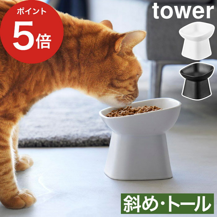 食べやすい高さ 陶器 ペットフードボウル タワー 斜め トール 山崎実業 tower 約200mL ホワイト ブラック 1781 1782 ペットフードスタンド ペットフード 皿 猫 犬 餌入れ エサ入れ 餌皿 おしゃれ 【フラリア】【ポイント5倍】