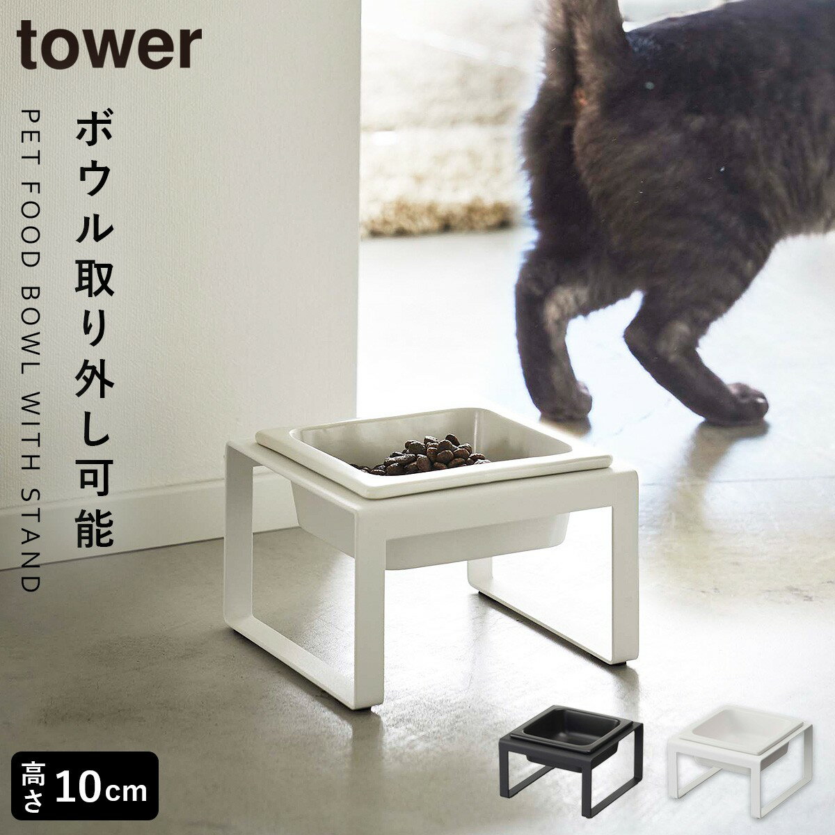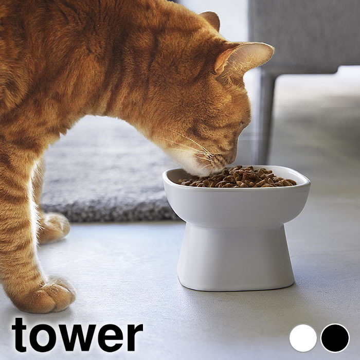 《ポイント5倍!》フードボウル 食べやすい高さ陶器ペットフードボウル タワー tower 犬 エサ入れ ペット 食器 陶器製 犬 餌入れ おしゃれ シンプル 猫 水入れ 山崎実業 yamazaki ヤマジツ 猫 エサ皿 白 黒 1779 1780 犬 餌入れ 高さ タワーシリーズ