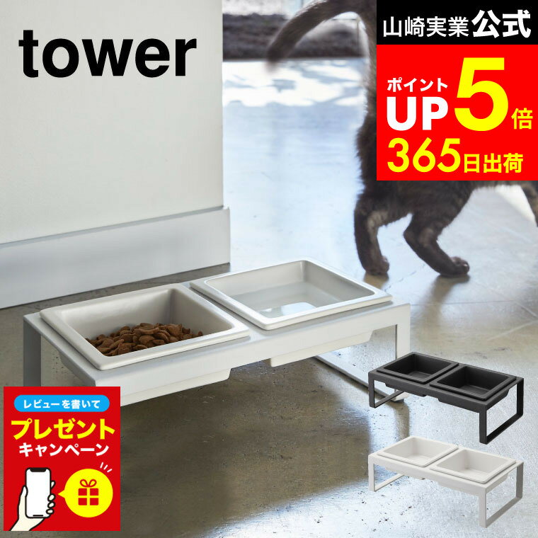 【365日出荷&当店限定特典付き】山崎実業 ペットフードボウルスタンドセット トール タワー tower 公式 ペット用食器 セット エサ台 水入れ ペットフード 水 フードボウル エサ皿 セット 高さ10cm ホワイト ブラック 4744 4745