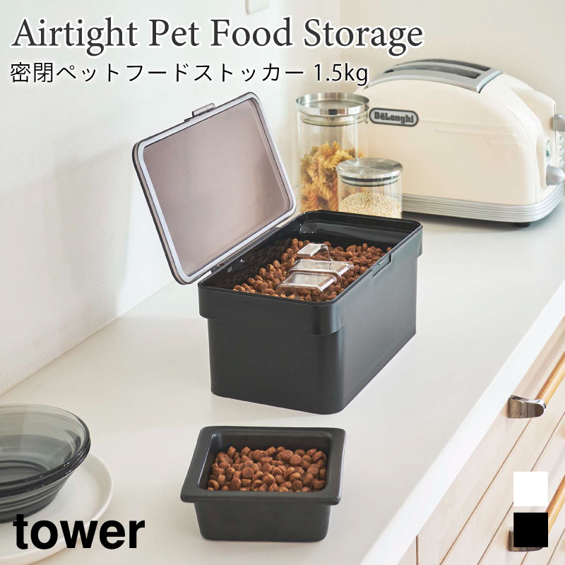 山崎実業 \ペット割で最大P5/ tower タワー 密閉ペットフードストッカー 1.5kg 計量カップ付き 【ラッピング対応】 【メッセージカード対応】 【クーポン対象外】 ペットフード ストッカー 保存容器 密閉 おしゃれ 北欧 計量カップ 白 黒 ペット用品