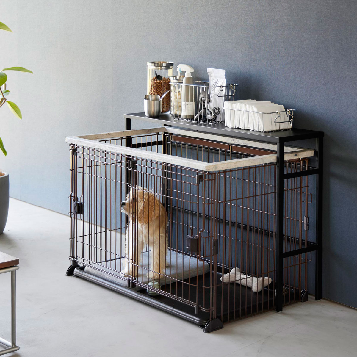 伸縮できるペットケージ上ラック! ペットケージ上のデッドスペースを有効活用、伸縮できるペットケージ上ラックです。ペットケージの大きさに合わせて天板の幅を変えられる伸縮式で、幅や奥行きに合わせてお好みの向きで設置できます。 ペットケージ上スペースを有効活用! ペットケージ上を収納スペースに。ペットケージ上のデッドスペースを有効活用できます。また、オプションのスチールパネル(別売)にマグネット付きの小物を取り付けられて便利です。 商品の情報 ・ブランド:YAMAZAKI(山崎実業)/日本 ・ジャンル:ペットケージ用収納 ・主な素材:スチール 粉体塗装 ・生産国:中国 ・サイズ:約W585〜1070xD260xH670mm ・内寸サイズ:約W555〜1040xH650mm ・重量:約6650g ・耐荷重:約5kg(天板)/約3kg(オプションパーツ取り付け部) ・対応サイズ:約幅もしくは奥行555〜1040x高さ650mm以内のペットケージ ・内容物:本体/六角レンチ ・その他:お客様組立て品となります。 この商品の仲間たち 正規品 tower タワー 伸縮ペットケージ上ラック ホワイト 正規品 tower タワー 伸縮ペットケージ上ラック ブラック