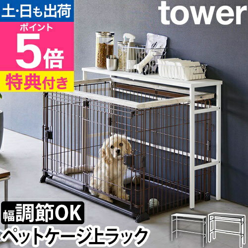 【楽天2位】【選べる2大特典】山崎実業 伸縮ペットケージ上ラック タワー 4086 4087 ペット用ラック 棚 テーブル シェルフ 薄型 ペット 高い おしゃれ ケージ 組み立て スリム おもちゃ 背板 なし スチール 猫 北欧 インテリア シンプル tower yamazaki タワーシリーズ